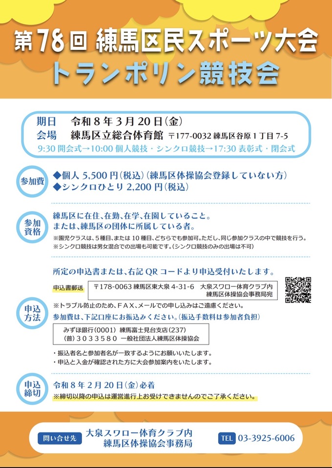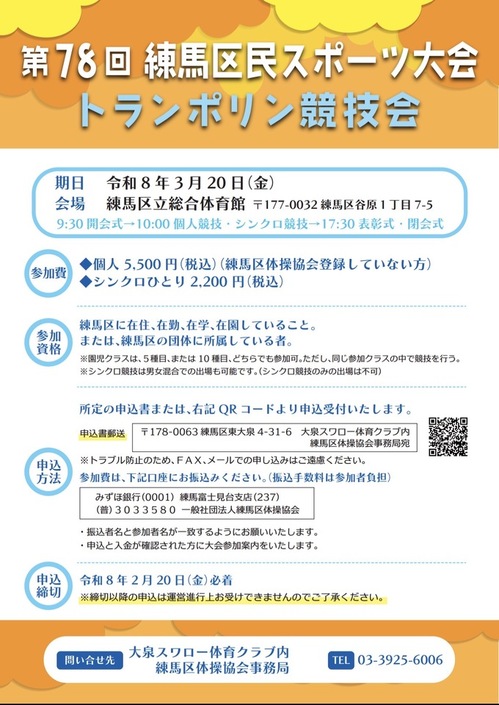 第78回練馬区民スポーツ大会【トランポリン競技会】のお知らせです。