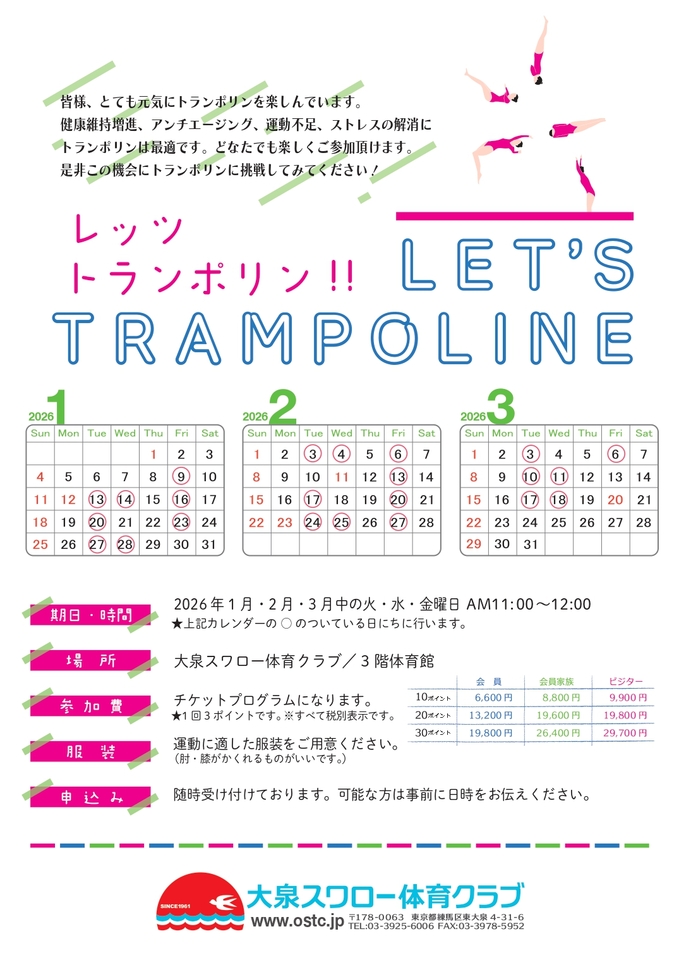HOME > 教室ブログ > トランポリン > レッツトランポリン開催スケジュール