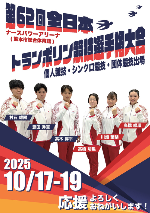 第62回全日本トランポリン競技選手権大会 出場のお知らせ