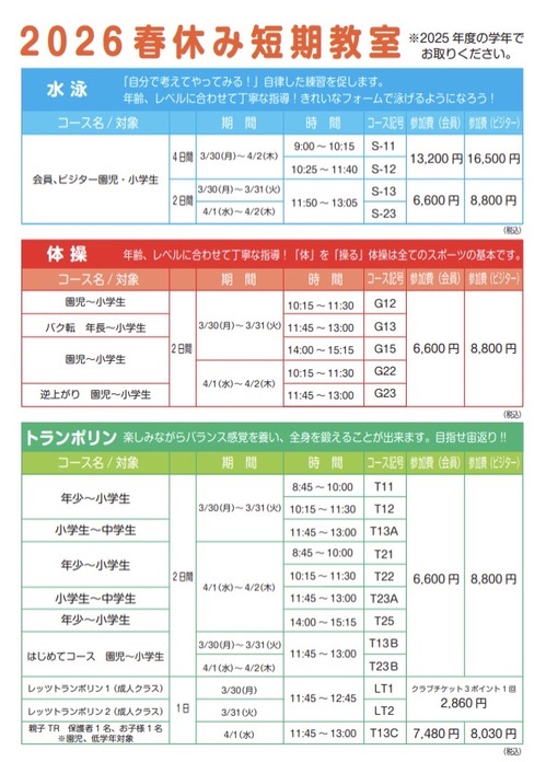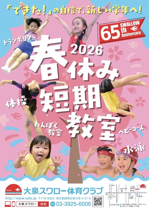 春休みはスワローで、体操・水泳・トランポリンを思いっきり楽しもう