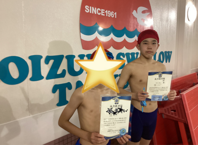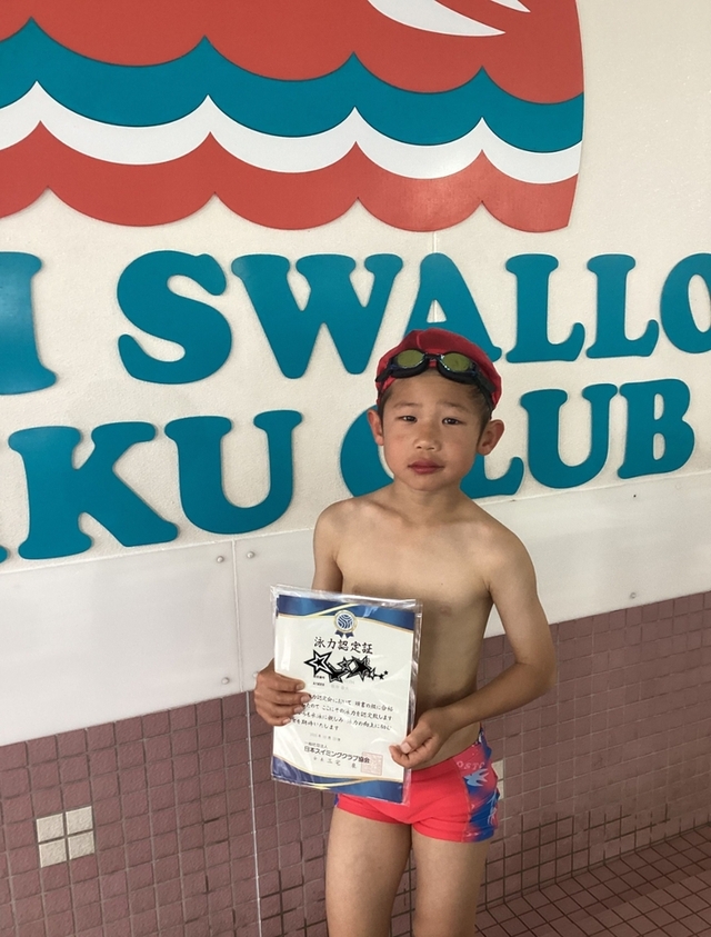 スワローの認定会では、指定の級に合格すると「泳力認定会」の級が取得できる内容となっており、 見事合格した子どもたちがいます