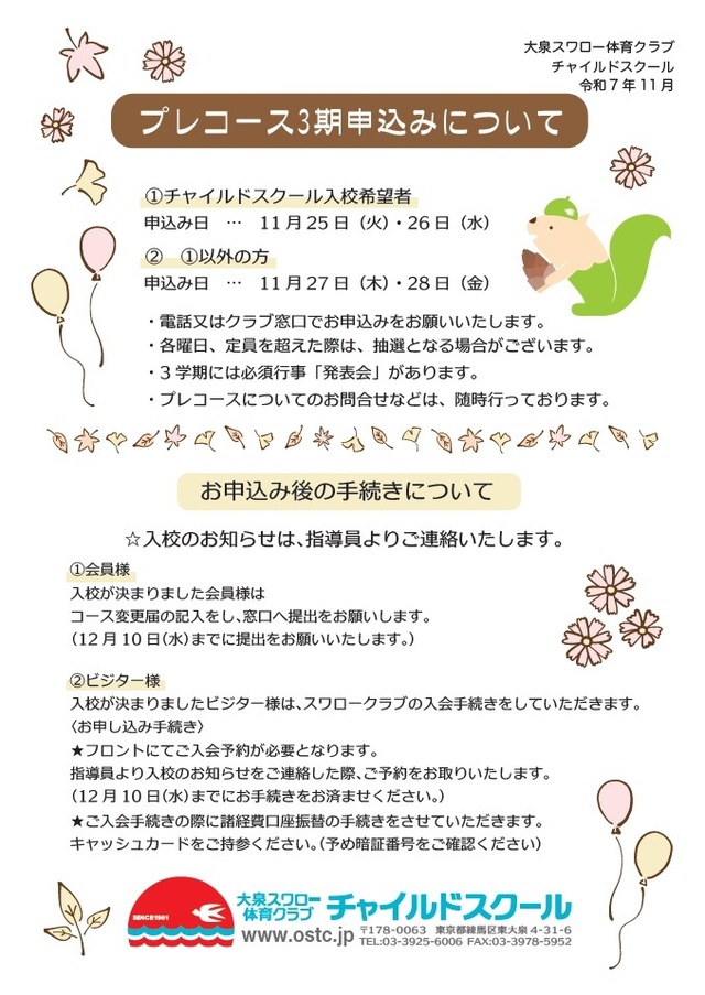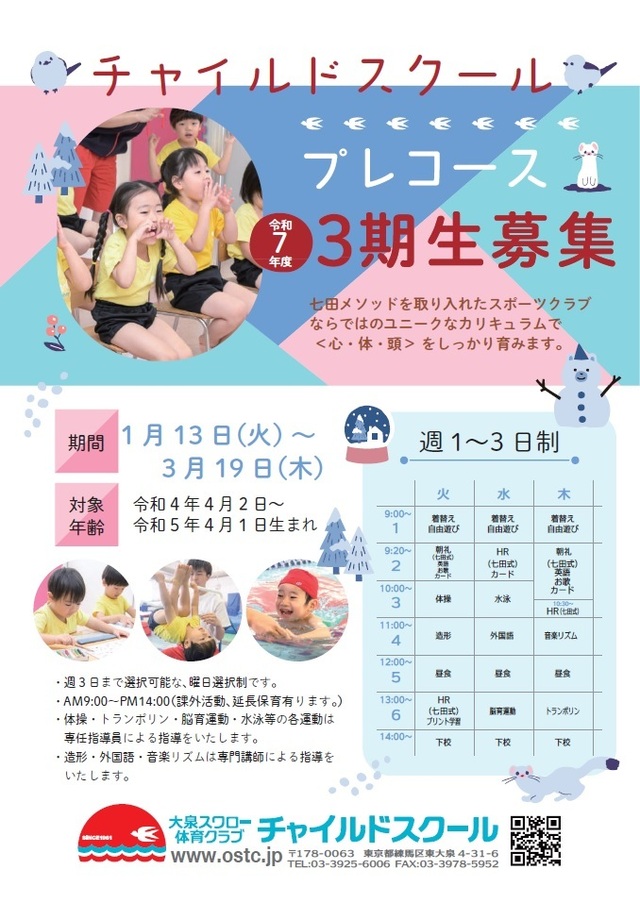 チャイルドスクールプレコース3期生徒募集のご案内です。